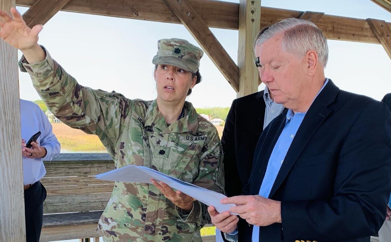 U.S. Senator Lindsey Graham yesterday visited the Town of Mount Pleasant to discuss the recent agreement between the Army Corps’ Charleston District, the South Carolina Department of Natural Resources (SCDNR), and representatives of the town about the placement of dredged material for the Crab Bank Restoration project.