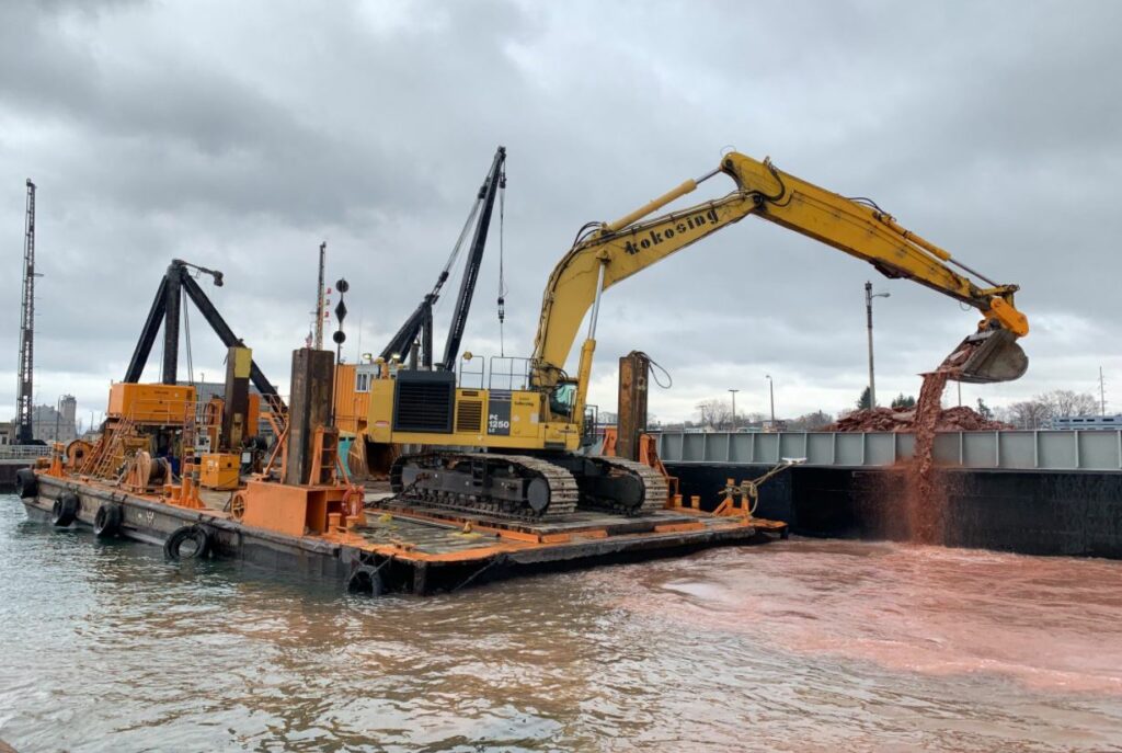 At the moment, the contractors Trade West Construction and joint venture Kokosing-Alberici are performing dredging activities at the Soo Locks.