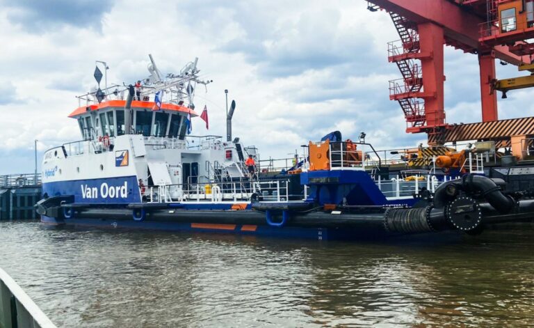 Its other innovative features include the ability to instantly switch between water injection modes from the bridge. The dredger is also equipped with a multi-beam echosounder, enabling online updates of the dredged seabed.