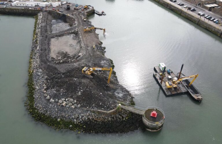 John Sisk & Son Ltd. is back at work at Howth Middle Pier after a long break to continue the dredging in preparation of the new quay wall for the Department of the Agriculture, Food & the Marine.