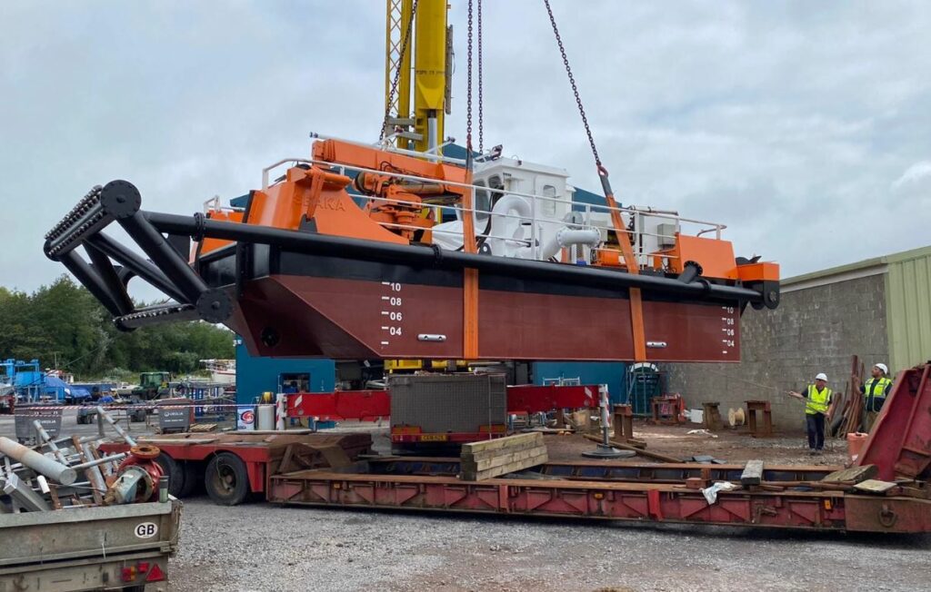 Our in-house team of engineers at Cardiff Diesel Services did an incredible job fitting her two engines. With the pumps fitted, she moves around 330L of water every second over her 5m boom. In turn, that should be shifting up to 450m3 of soft silt material per hour. For a dredger with a footprint of only 5m by 10m, those are just incredible numbers.