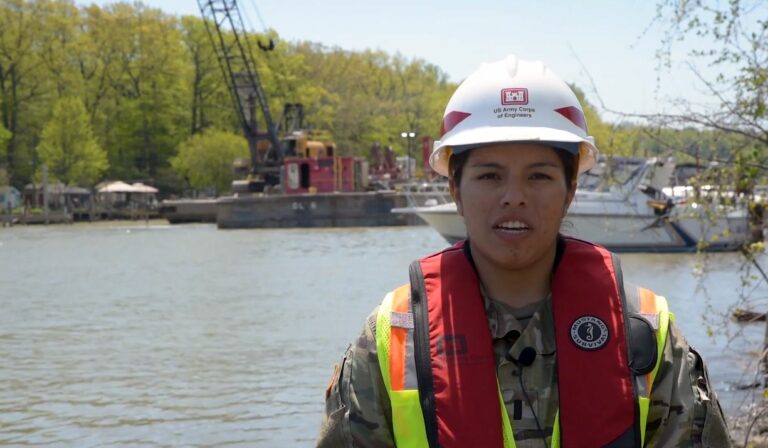 In the video, 1LT Stacey Acapana, U.S. Army Corps of Engineers Buffalo District quality assurance representative, provides an update on the Rochester dredging operations.