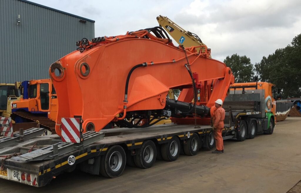 In this photo, the transport of the EX 1900 SCP base machine – loaded in Hoorn at Snijder BV – is shown: