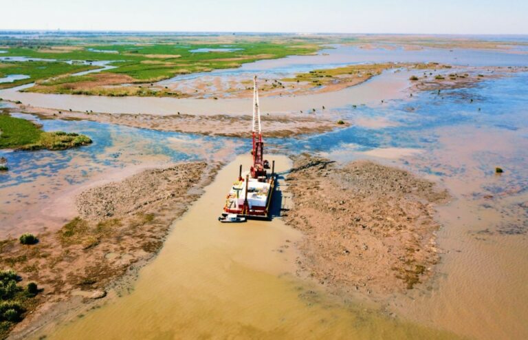 “This project consists of two primary components,” said Project Manager, Geoffrey Klug. “First the construction of a temporary dredged material management area, or DMMA, and second dredging a total of approximately 25,000 cubic yards of shoal material from two small sections of the river channel and the federal turning basin.”