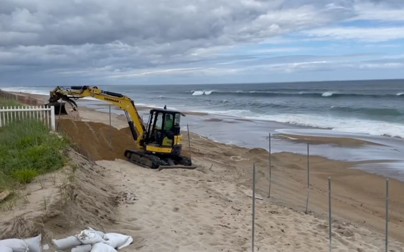 The project entails dumping sand along numerous dunes in the North End Boulevard area of the beach with an eye toward improving public ways, as well as protecting homes near the beach.