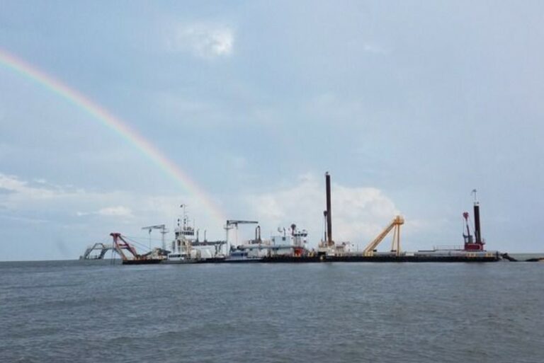 The work required hydraulic dredging of approx. 10 million cubic yards of material within the Atchafalaya River Bay and Bar Channel In three primary reaches: Crewboat Cut, the Bay Reach, and the Bar Reach.