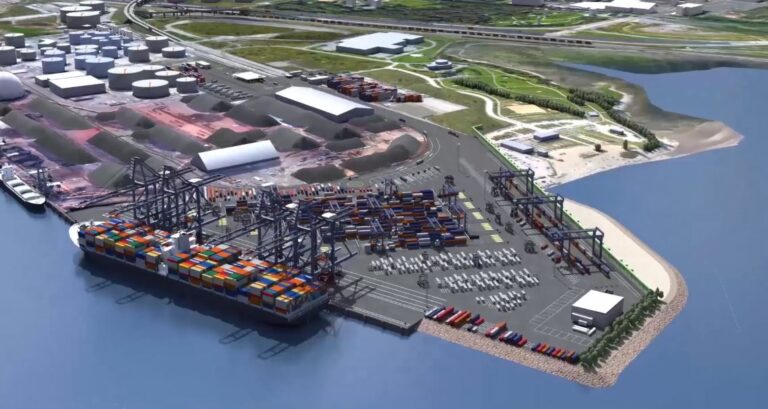 The project also includes the construction of a new berth and a retaining dike that would allow for the development of an additional 17 hectares of backshore space, along with the construction of rail lines and various road accesses.