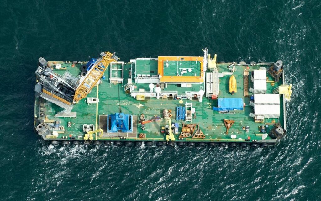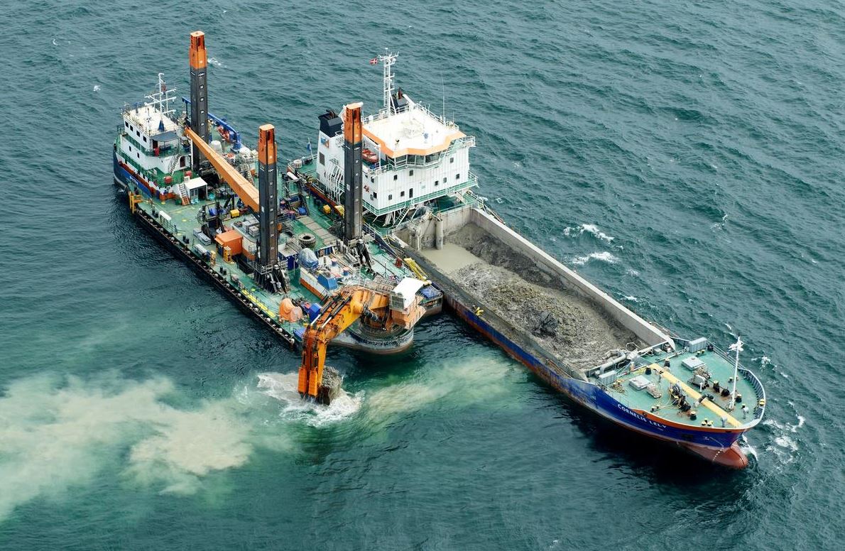 Later, two more digging vessels will encounter the work fleet, which also consist of several tugs, barges and service ships.