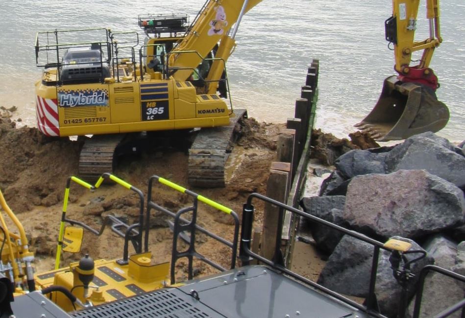 An additional piece of coast defence is being installed below the cliff at North Corner in order to protect the green and the main road from washing into the sea in years to come.