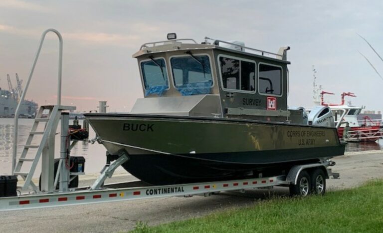 According to the Corps, the new vessel will become the workhorse for Baltimore District’s small navigation projects and is equipped with single and multi-beam sonars for hydrographic surveys.