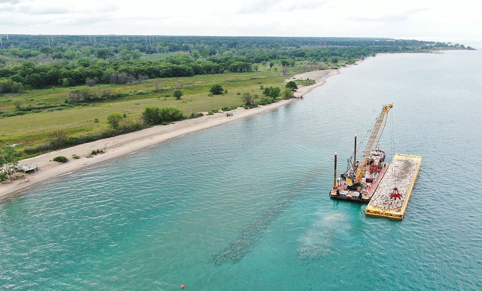 The objective of the project, funded through USEPA’s Great Lakes Restoration Initiative, is to field test innovative rubble ridge coastal infrastructure aimed at reducing shore erosion and nearshore habitat loss in the selected impacted area.