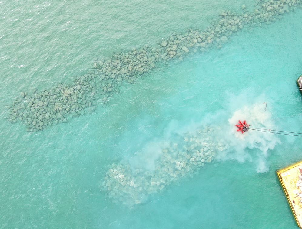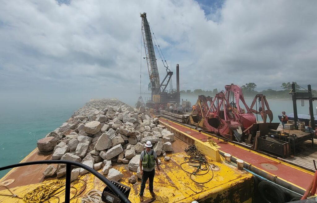 USACE procured stone via contract and are placing the stone using the Corps’ in-house Kewaunee Floating Plant.