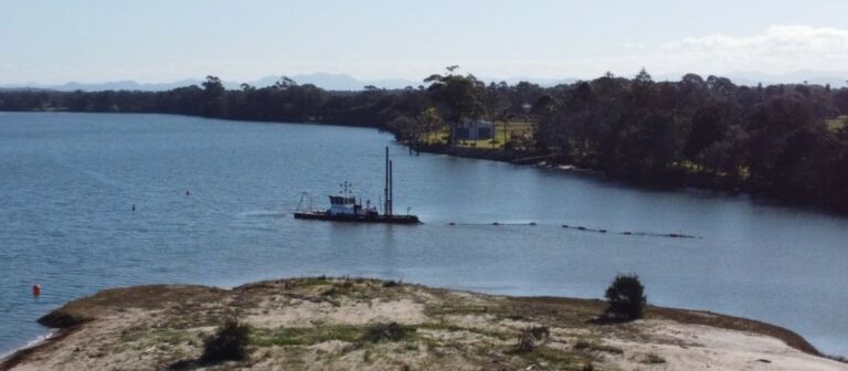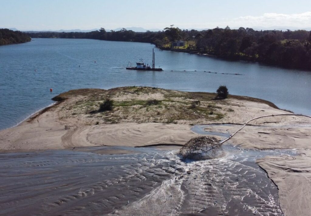According to the MidCoast Council, the dredge spoil is being pumped to two locations. A small amount of dredged material will be deposited on the sand island near Cowans Lane, west of Charlies Island to enhance threatened shorebird habitat. The remaining bulk of the dredged material will be pumped via a dredge pipeline and directly discharged back into the ocean at Mitchells Island Beach.