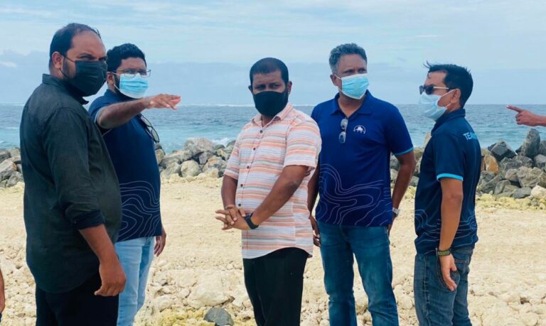Maldives Transport and Contracting Company (MTCC) CEO, Adam Azim, inspected the progress on the Ha. Ihavandhoo Harbour development project today.