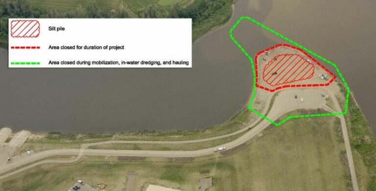 “Beginning July 28, the parking lot and waterfront area at the point of Snye Park will be closed in intermittent periods. The closures will allow for mobilization, hauling material from the site and demobilizing. Between these operational periods, the area will be accessible to the public,” RMWB said.