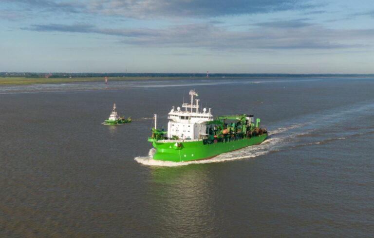 According to DEME, these two vessels travelled alongside each other along the River Elbe before the Dhamra waved farewell as the Uilenspiegel headed off to her next project.