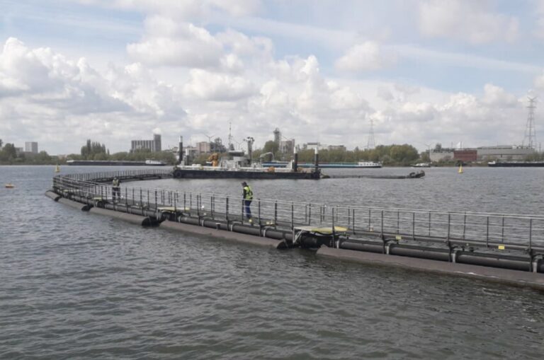 For the AMORAS project, funded by the Flemish Department of Mobility and Public Works (Maritime Access), SeReAnt (Jan De Nul and DEME) co-designed and delivered a floating pipeline of roughly 200 meters equipped with a walkway to facilitate transfer of personnel to a CSD.