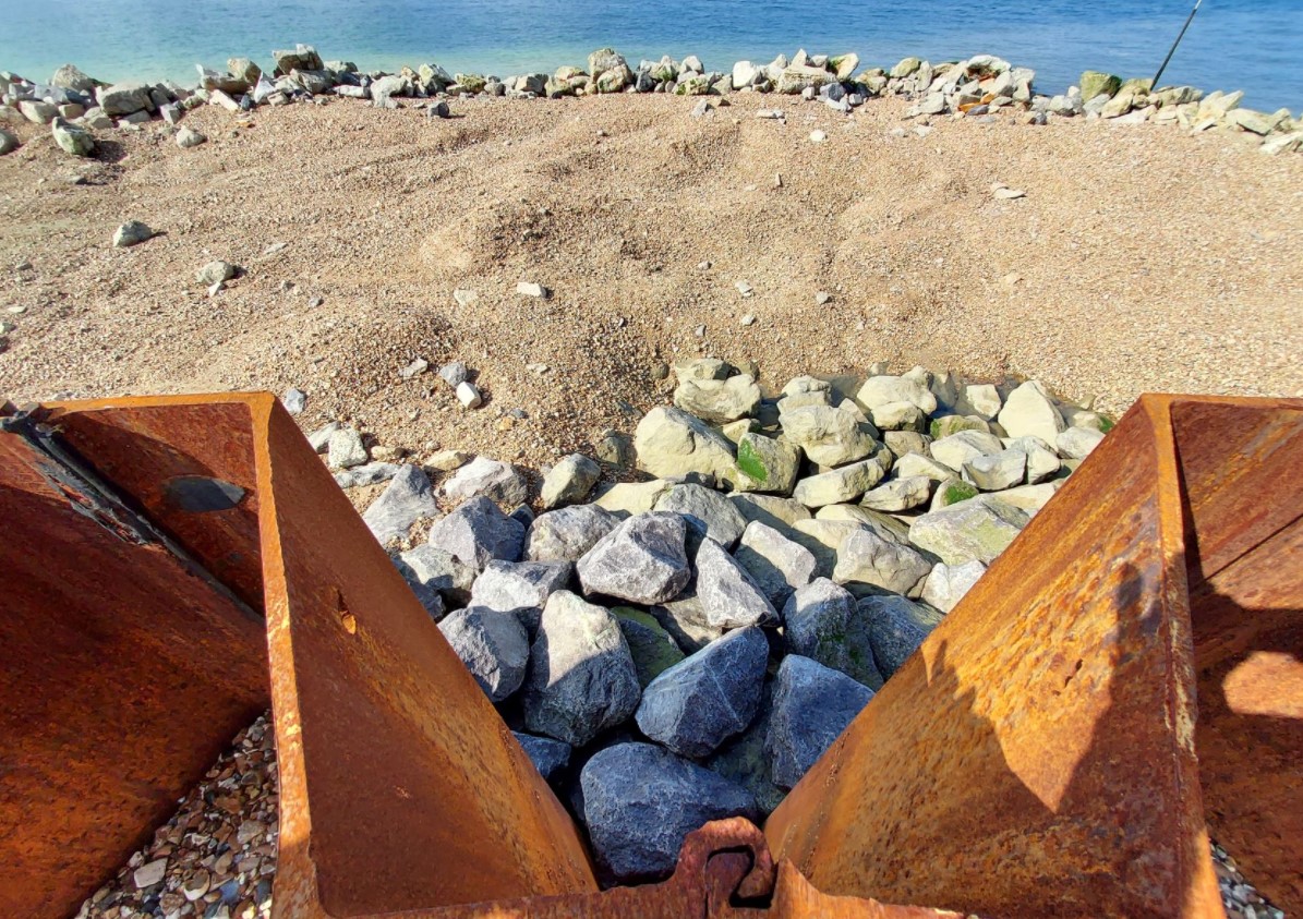 When the full length of the rock revetment is placed and finished, much of it will be covered with shingle to maintain the aesthetics of the area.
