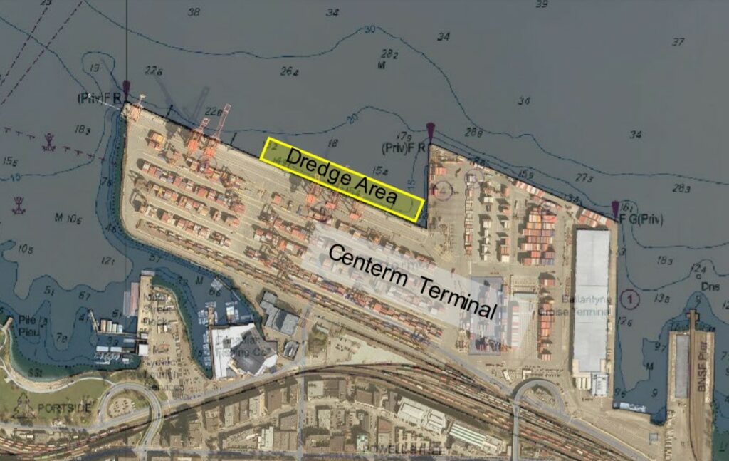 The port authority anticipates that this maintenance dredging operation will remove approximately 5,000 cubic metres of sand mixed with some silt and clay from the Centerm Terminal.