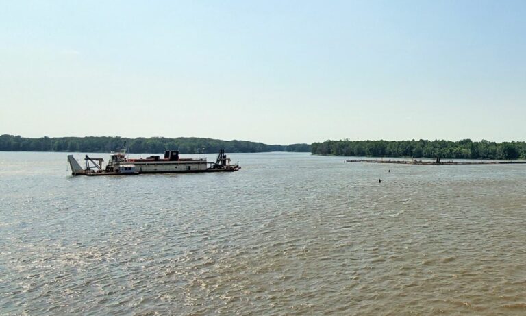 According to USACE, the dredging crew will break the pipeline apart to allow for safe navigation from 11:30 a.m. to noon and from 4:30 to 5 p.m. daily.