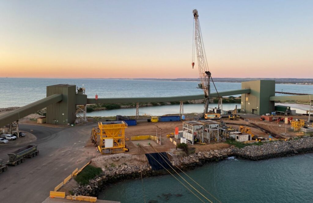 Mid West Ports Authority has just released this beautiful photo of the partly installed pipes that will move the sediments from the dredger onto the Berth 7 reclaim, which have now been fully installed.