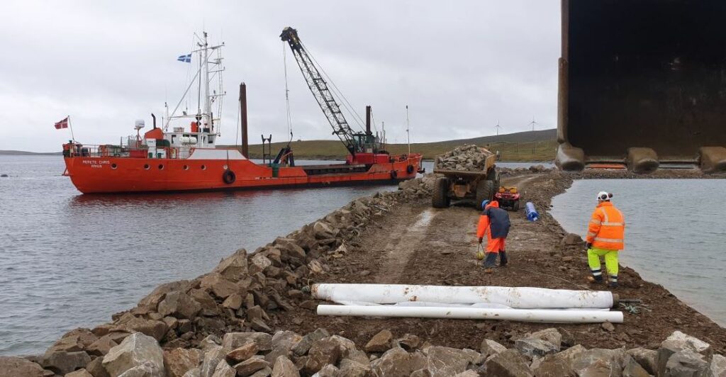 Work is progressing well at a breakwater project at Cullivoe in the Shetlands, where the North Yell Development Council (NYDC) is enlarging the marina and business park.