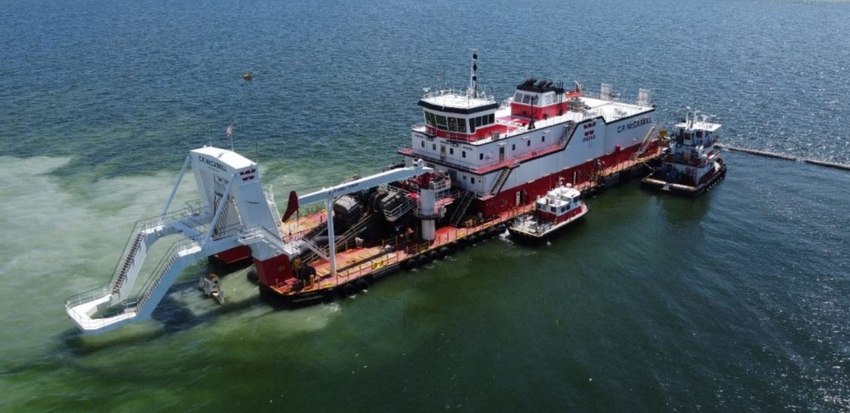 The C.R. McCaskill is a 30” cutter suction dredge, comparable to the E.W. Ellefsen that was used for beach Segments 2 and 3 of the Longboat Key project.