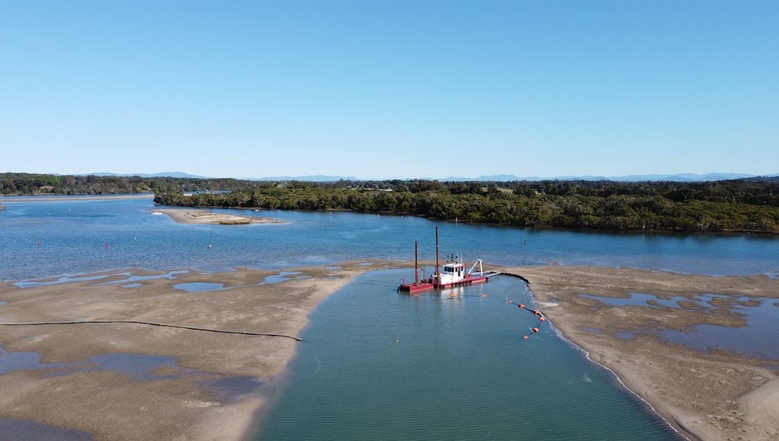 The bulk of dredge spoil was pumped back into the ocean at Mitchells Island Beach and a small amount deposited on the sand island near Cowans Lane, west of Charlies Island, helping to enhance threatened shorebird habitat.