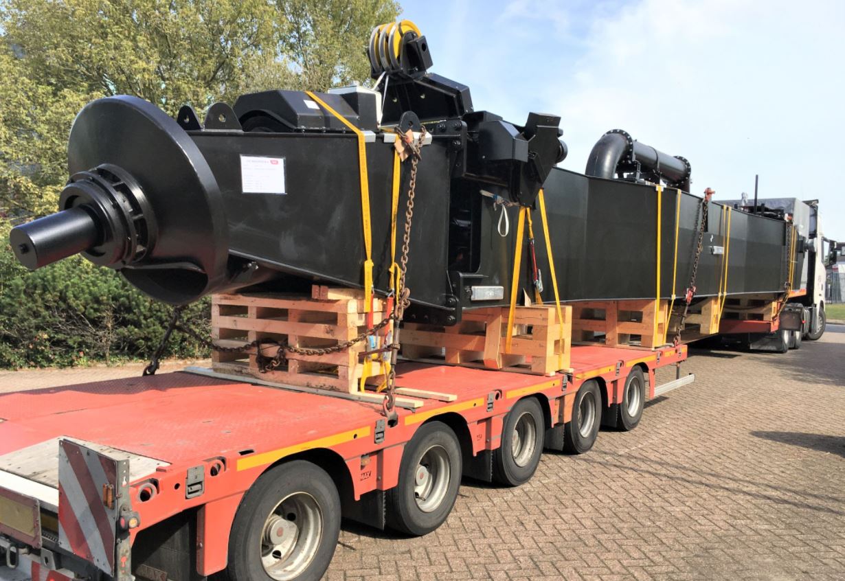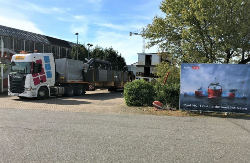 Royal IHC has loaded the first truck at their shipyard in Kinderdijk and it is now on its way to their customer Lotos JSC.
