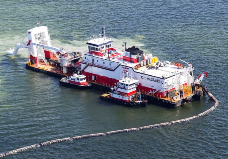 The C.R. McCaskill is a 30” cutter suction dredge, comparable to the E.W. Ellefsen that was used for beach Segments 2 and 3 of the Longboat Key project.