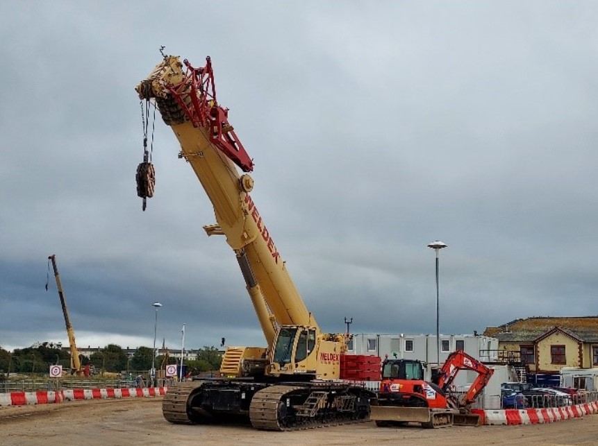 Also worth mentioning is that a 220 tonne crane was delivered to site this week. The crane is ready for placing the granite apron revetment (sloped wall) between the rear pile lines next week.