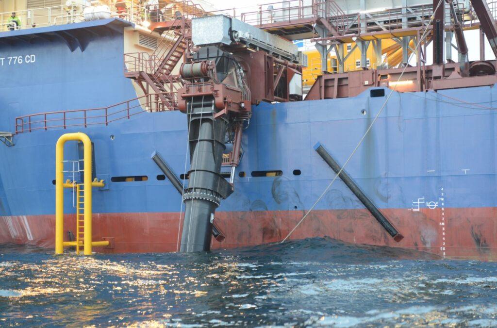 Another feature that MOTAS engineered is the active motion compensation system. This system makes it possible to keep the pipe near-static positioned, even when it is being operated in rough seas. This combination of systems makes the Fall Pipe System very accurate when it comes to installing rock.