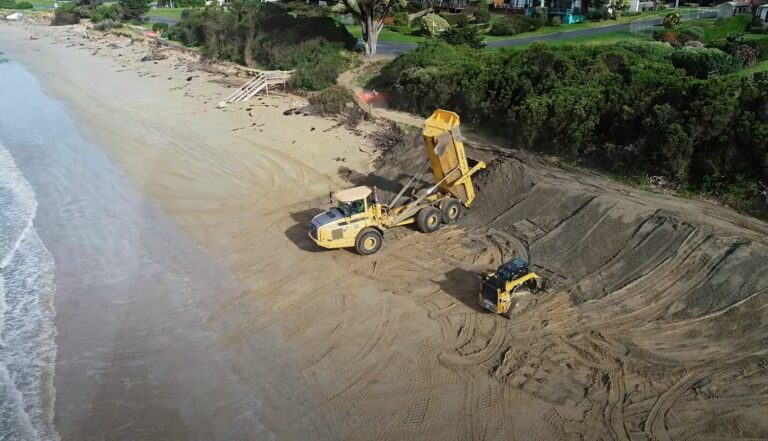 Approximately 35,000 m3 of sand will be pumped onshore and 25,000 m3 will be used to construct the beach profile while the remaining sand will be used to replenish beaches at Indented Head and St Leonards.