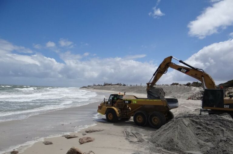 This sand removal project prevents excess sand moving around the harbour breakwater and into the harbour where it would otherwise need to be removed with a dredge.