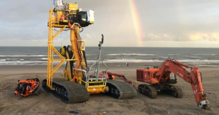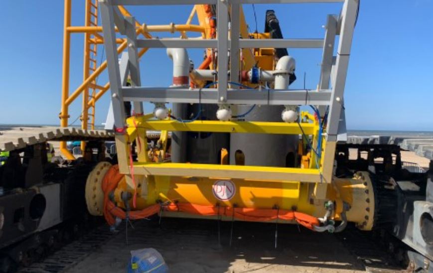To do this job, Jan De Nul designed and built a special vehicle – the trencher, ready to work in the surf zone independently, and bury the cables using pressurized water.