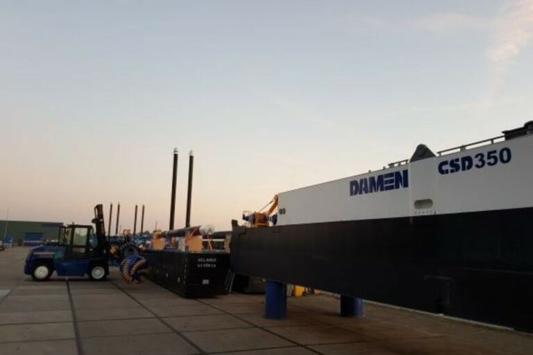 According to Damen, the CSD350 is perfect type of dredger for this job, with a max. dredging depth of -9m and an dredge production of some 2,000 m3/h, the vessel is compact enough to be transported by road following dismounting.