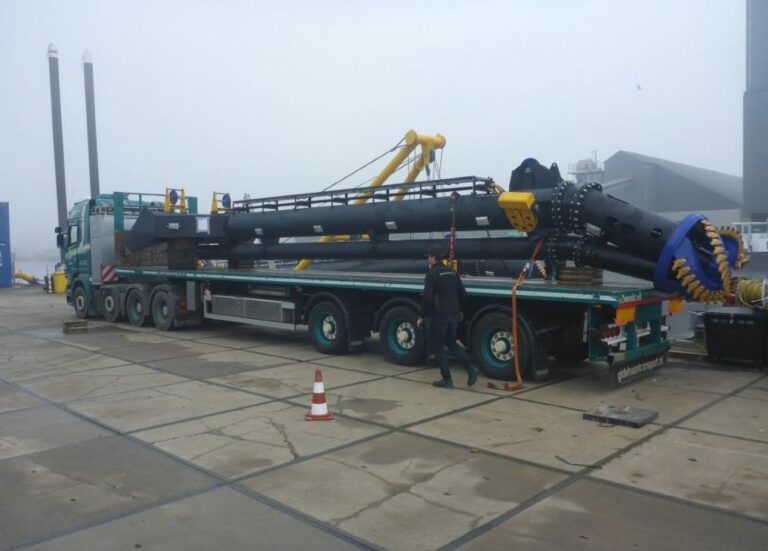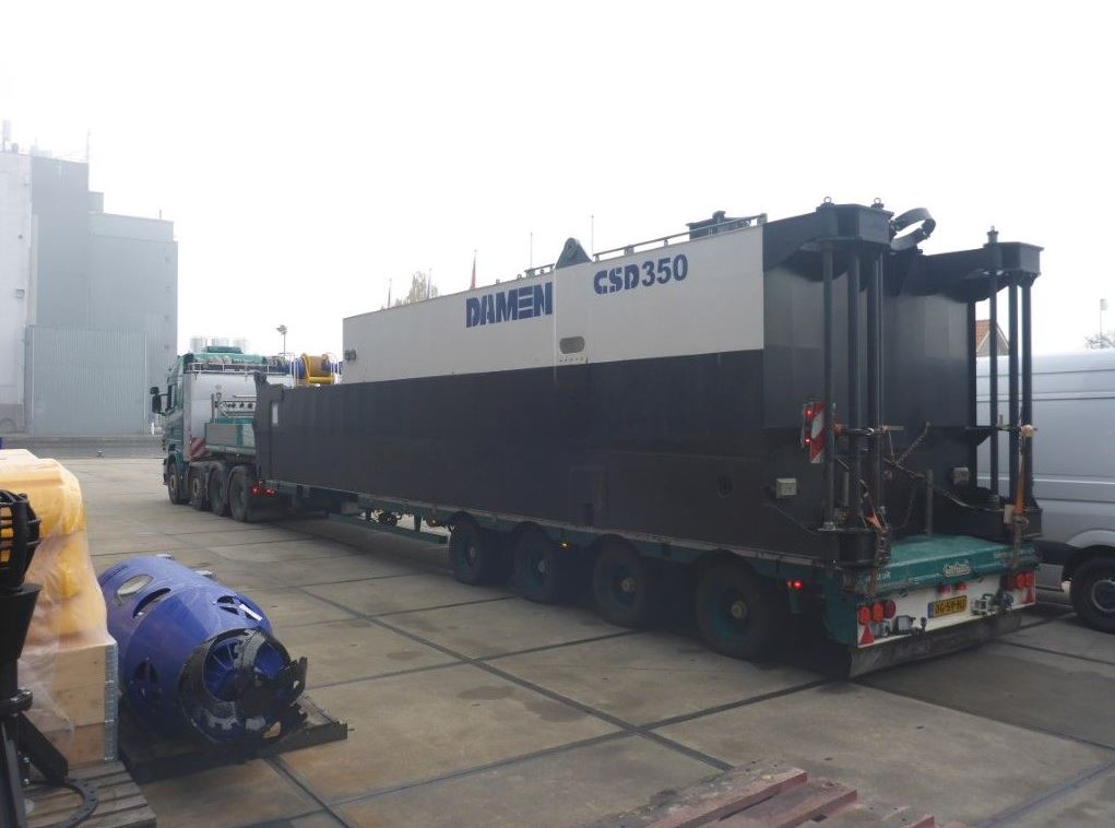 “The CSD350 Holanda has been loaded on trucks on a misty Dutch morning, heading for Antwerp. There, the disassembled cutter suction dredger was hoisted on board of a freight vessel,” the company said in their latest announcement.