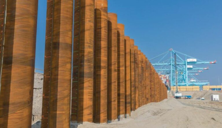 In total, almost 3,000 piles and 700 sheet piles will be used in order to construct the 2.4 kilometres of quays and earth-retaining walls.