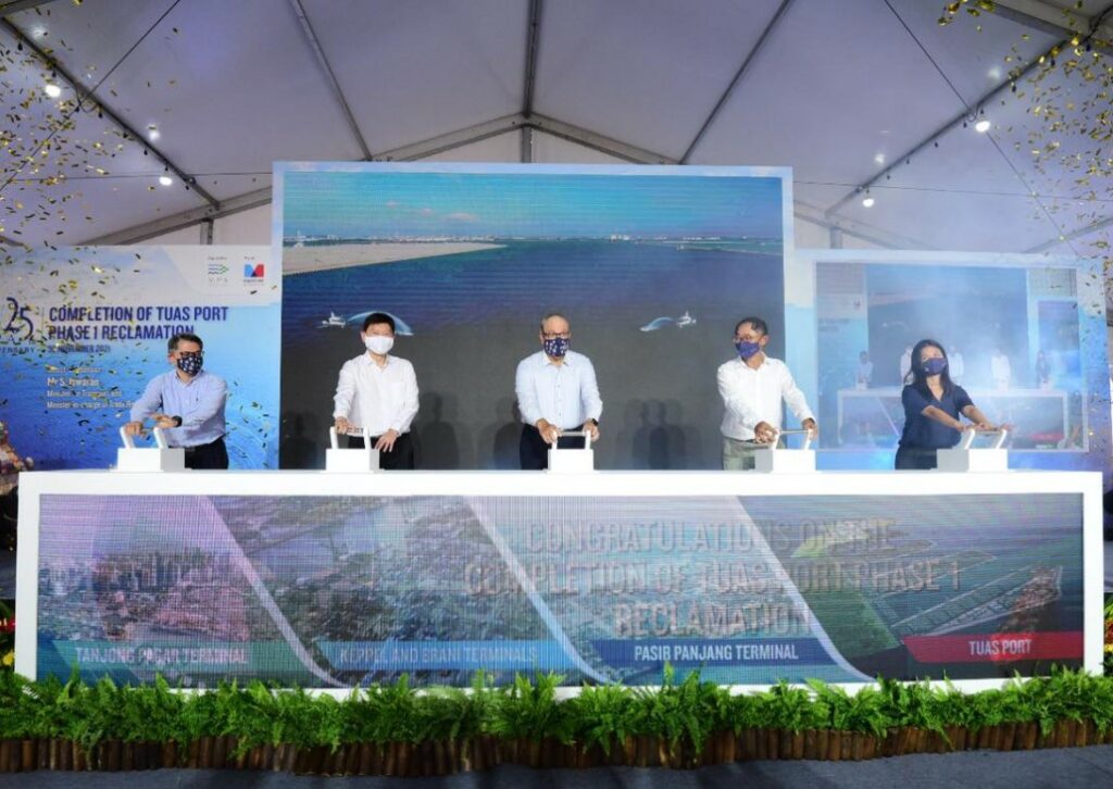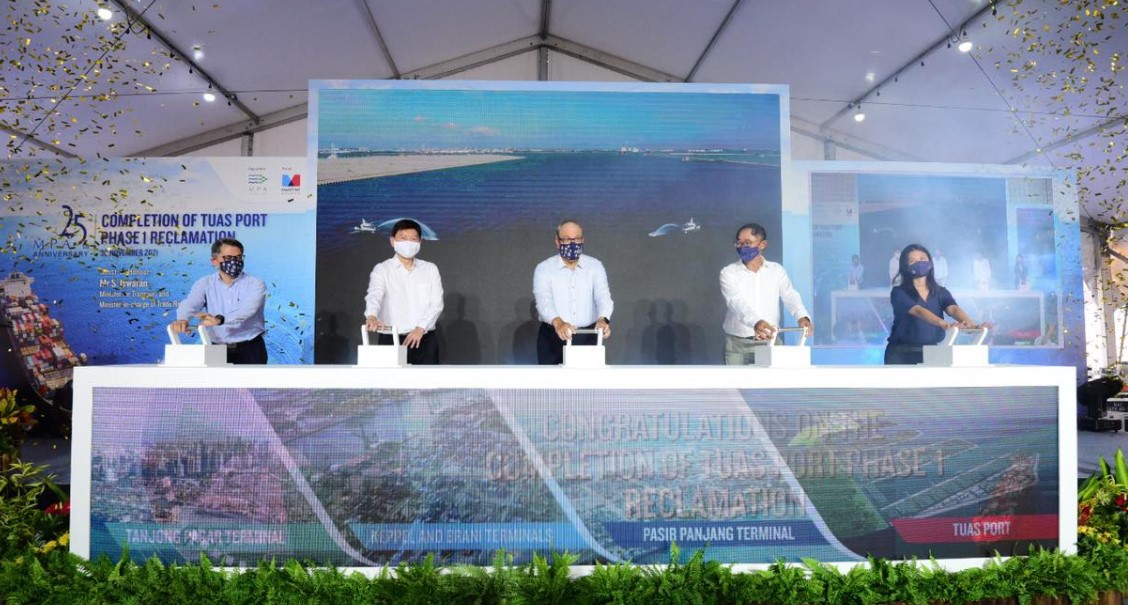 The Maritime and Port Authority Singapore (MPA) today celebrated a major achievement with the completion of reclamation works for Phase 1 of the Tuas Port Project.
