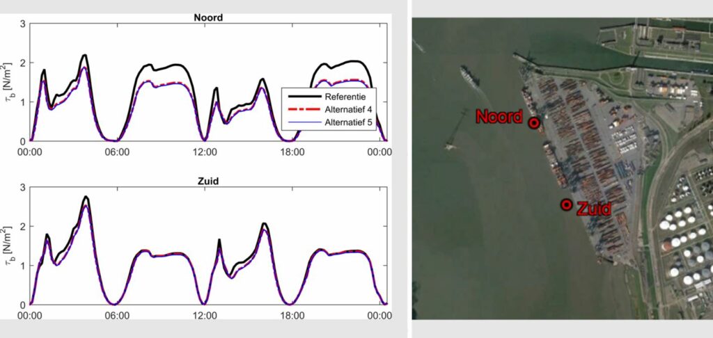 The study constisted of a desk study, data analysis and a hydrodynamic modelling study. Using various measurement series and extensive validation and calibration, a numerical model was created that provides reliable predictions. With this model, the effects of the deepening of the terminal on the environment were analysed.