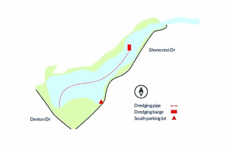 Dredging will result in the removal of 370,000 cubic yards of accumulated sediment from the lake and restore water depth to a minimum of eight feet. This depth prevents invasive aquatic vegetation from taking hold and removes debris and trash from the lake bottom, improving water quality and restoring the lake to recreation levels.