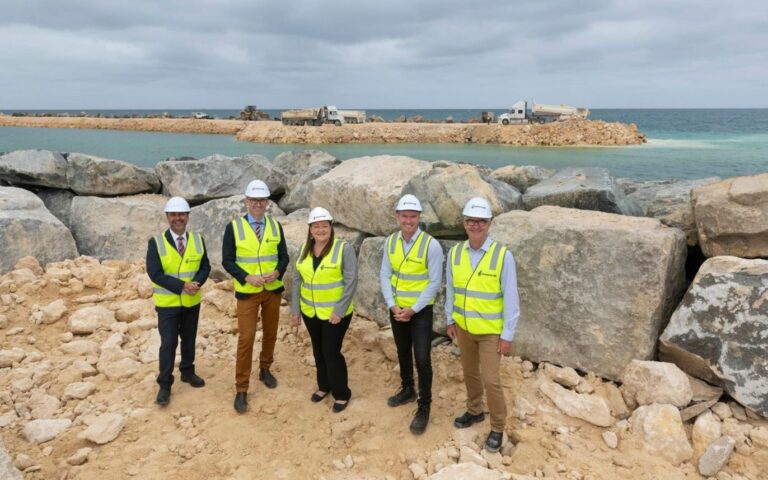 When complete, the new breakwaters will comprise approximately 650,000 tonnes of limestone – the majority of which has been sourced locally from DevelopmentWA’s Neerabup quarry.