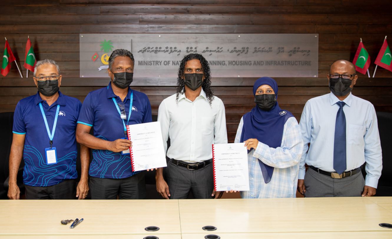 Maldives Transport and Contracting Company (MTCC) yesterday signed an agreement with the Maldives’ Ministry of National Planning, Housing and Infrastructure towards implementation of the Ga. Dhaandhoo Harbour Development Project.