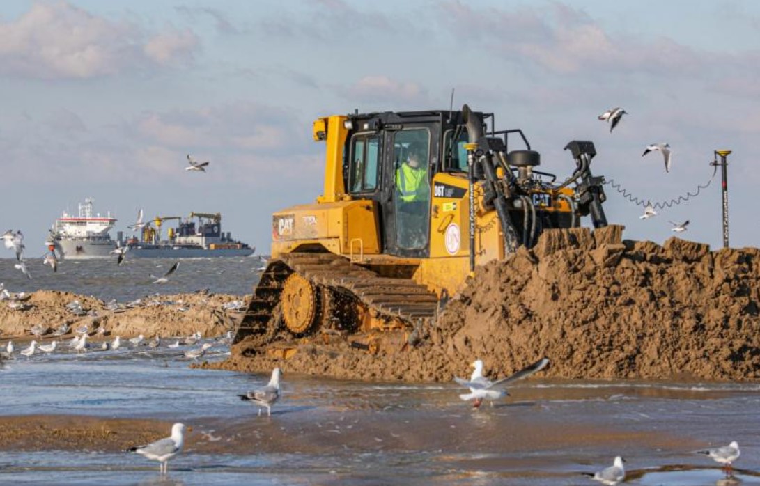 The bulldozers and excavators on the beach will be equipped with advanced exhaust gas filter systems that reduce the emission of fine dust and nitrogen by 80%.