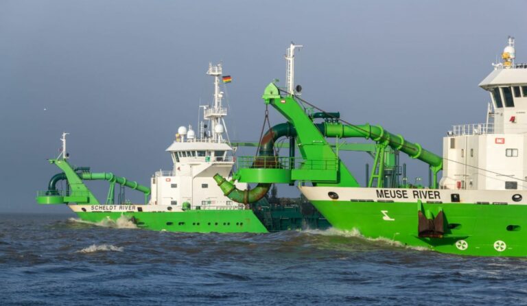 One of their newest hoppers, the  8,300 m³ ‘Meuse River’, took over the maintenance campaign after a successful intervention by the renowned trailing suction hopper dredger ‘Scheldt River’.