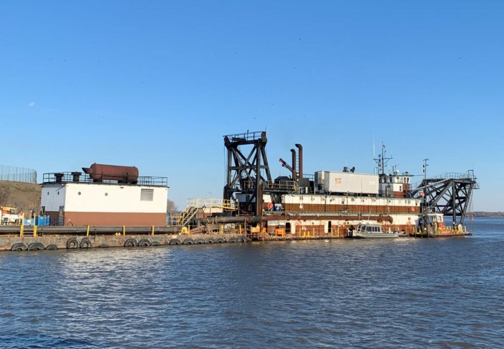 The removed sediment is being pumped to USACE-owned dredged material disposal facilities along the river.