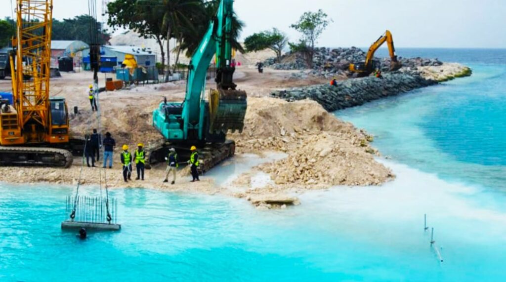 Maldives Transport and Contracting Company (MTCC) has just released that the work on the Sh. Foakaidhoo Harbour development is in full swing.