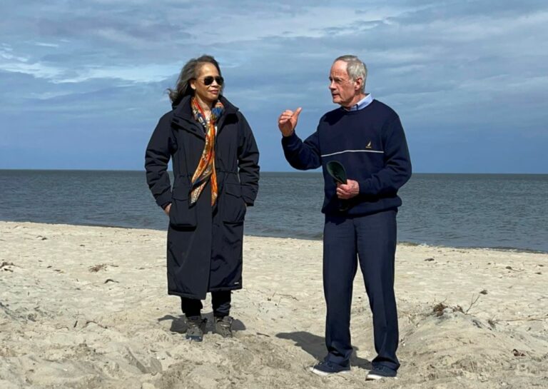 Delaware Senator Tom Carper visited Slaughter Beach to discuss beach replenishment and coastal restoration yesterday.