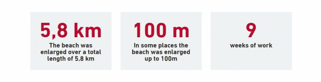 In order to restore the 5.8 km beach and expanding it from its current width of 25m to 70m, Jan De Nul has been pumping sand for about nine weeks straight.