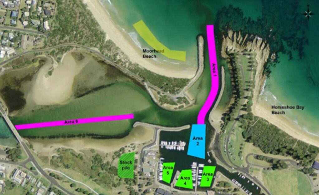 • Material dredged from inner harbour areas of Bermagui Harbour (Areas 3, 4 and 5) will be placed in bunded areas at the stockpile site and are to be tested and classified for reuse or waste;